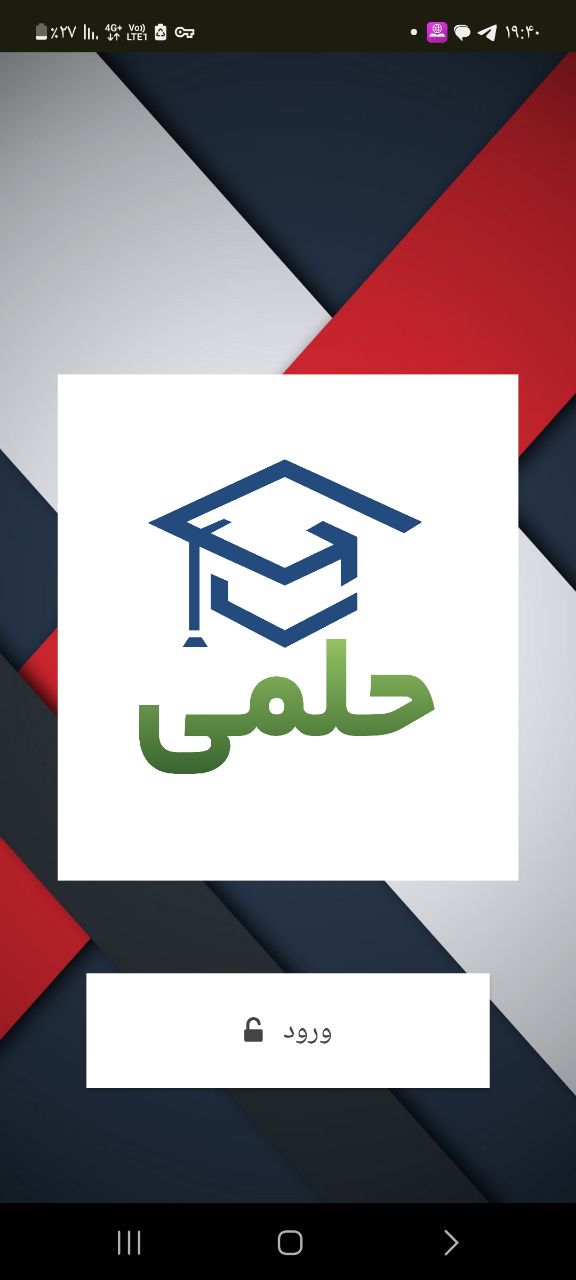 پس از نصب و باز کردن اپلیکیشن، صفحهی ابتدایی نمایش داده میشود. روی گزینهی ورود کلیک کنید.