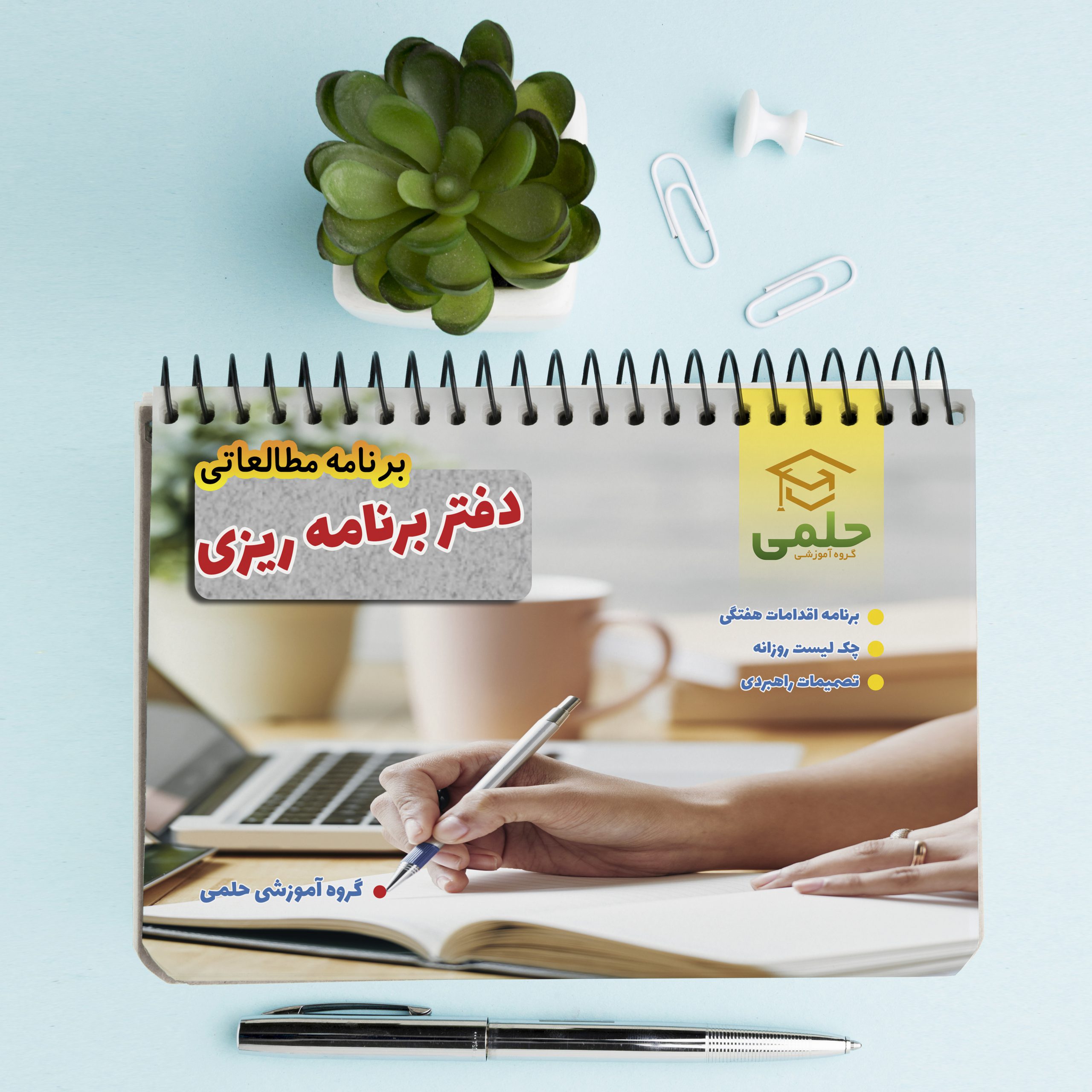 دفتر برنامه ریزی حلمی     سایز :  A4  نوع صحافی :  سیمی فرم صحافی : افقی ...مشاهده ی مطلب